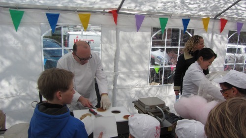 Vanwege de voorspelling was er wel een rekening gehouden met het weer en waren een aantal activiteiten verplaatst naar de gymzaal die aansloot op het schoolplein. De overige activiteiten vonden op het schoolplein plaats en deze combinatie was uiteindelijk ook heel leuk. MijnPartyservice was ook dit jaar weer aanwezig met de lekkere warme stroopwafels die op locatie gemaakt werden en ook de suikerspinmachine was weer aanwezig en onder het toeziend oog van vele enthousiaste kinderen werden er ruim 300 suikerspinnen gedraaid en uitgedeeld. Daarnaast hadden wij ook nog onze mooie Italiaanse ijscokar meegenomen die voor deze gelegenheid gezellig versierd was met heliumballonnen en van waaruit ook talloze ijsjes werden uitgedeeld.